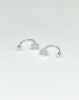 ❤️ 單隻販售可混搭 ❤️ 全純銀耳環|C型系列 。 多種戴法 | 迷你純白四瓣花 | 鎖珠 | 極簡 | 花 | 耳環 | 設計款
