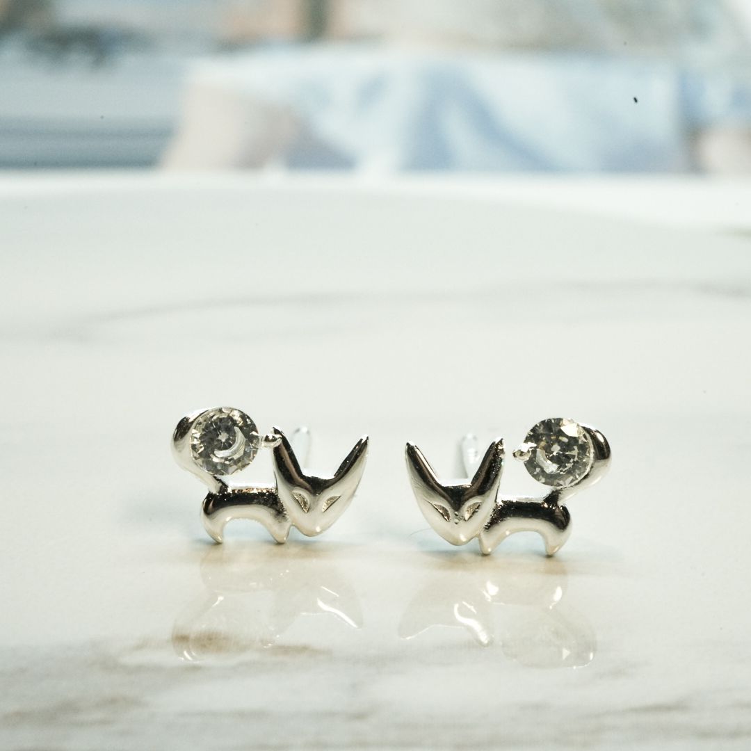 全純銀耳環|2色・狐狸鑽 | 貼耳 | 耳環 | 設計款