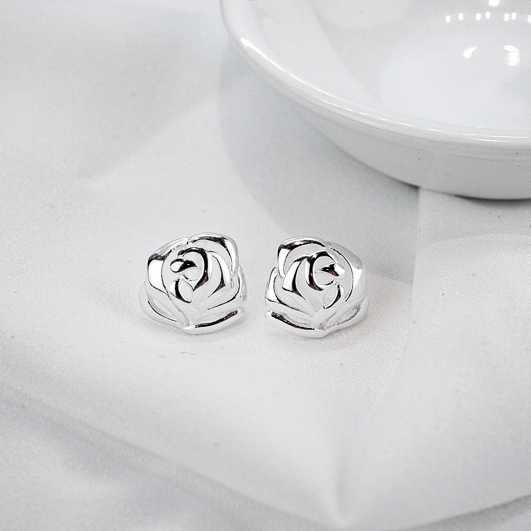 全純銀耳環|山茶花之戀 | 玫瑰 | 貼耳 | 耳環 | 設計款