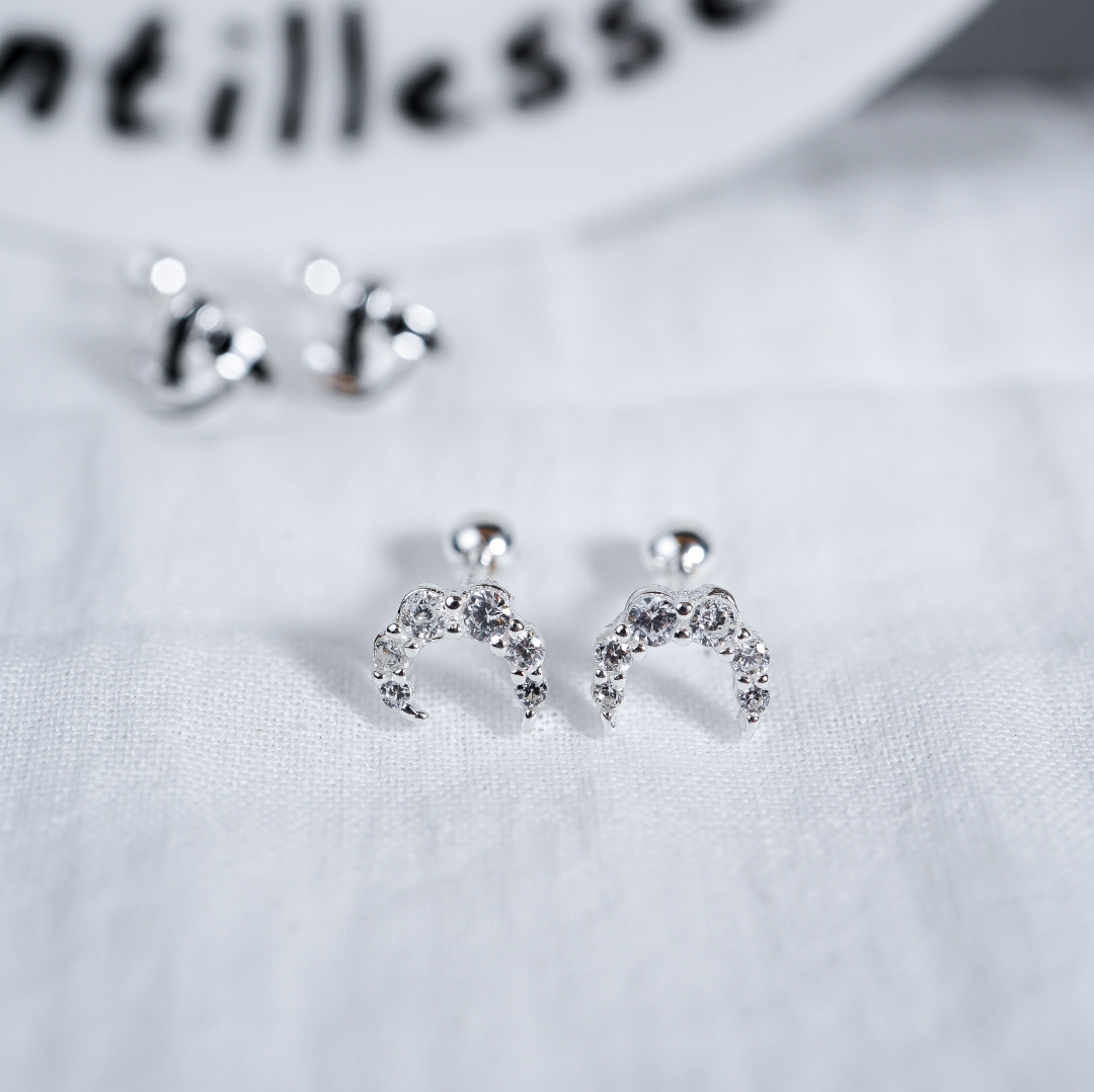 全純銀鎖式耳環|你永遠最美 | 星月 | 滿鑽 | 鎖珠 | 耳環 | 設計款