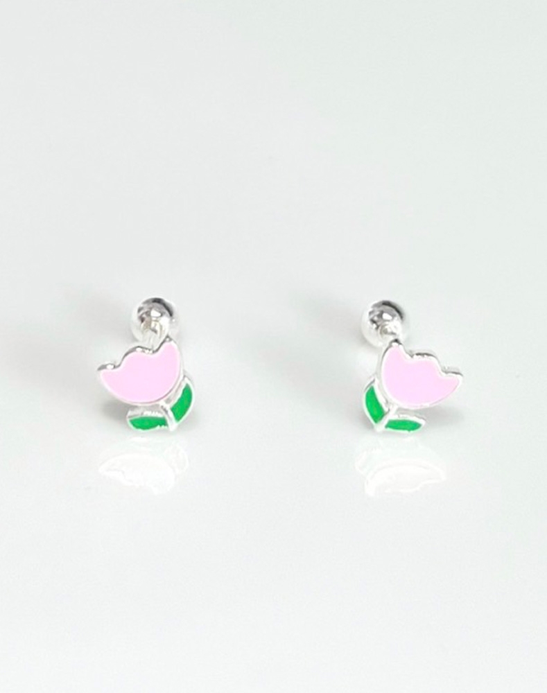 全純銀耳環|夏日繽紛系列 。 甜粉花花 | 彩色 | 鎖珠 | 可愛 | 穿洞合適 | 夏天 I 耳環 | 設計款