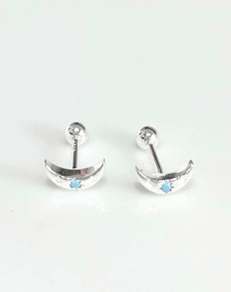 全純銀耳環|迷你月亮 水藍 | 多色 | 鎖珠 | 可愛 | 穿洞合適 | 夏天 I 耳環 | 設計款