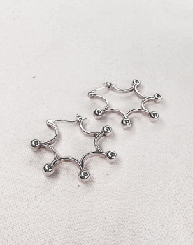 ❤️ 單隻販售可混搭 ❤️ 全純銀耳環|C型系列 。 多種戴法 | 爆閃噴砂球 | 鎖珠 | 極簡 | 耳環 | 設計款