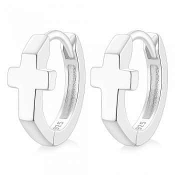 全純銀耳環|2尺寸・平面十字