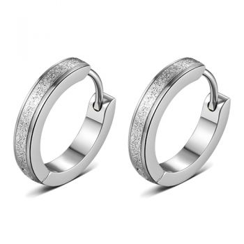 醫療鋼耳環|3尺寸 · 寬版中間噴砂 | 圈圈 | 耳環 | 舒適 | 極簡