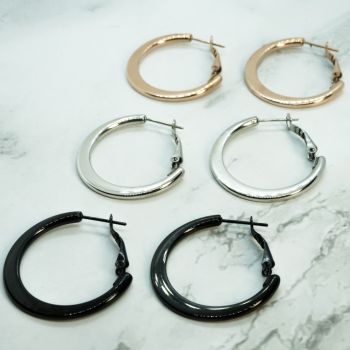 醫療鋼耳環|3尺寸 · 寬版中間噴砂 | 圈圈 | 耳環 | 舒適 | 極簡