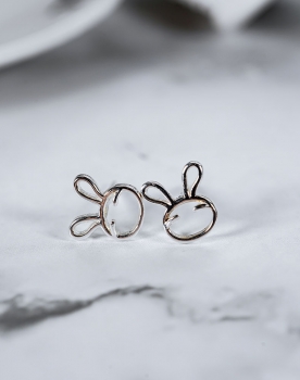 全純銀耳環|慵懶小兔 | 貼耳 | 耳環 | 設計款