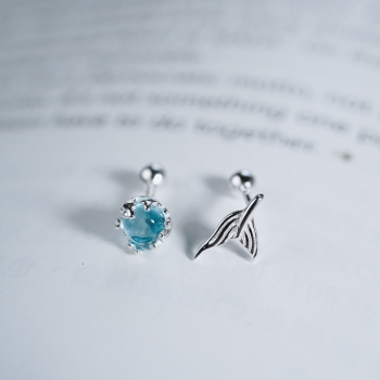 全純銀鎖式耳環|魚水深情 | 海藍寶 | 鎖珠 | 耳環 | 設計款