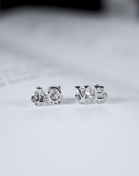 全純銀耳環|戀愛咒語 L O V E | 鋯石鑽 | 貼耳 | 耳環 | 設計款
