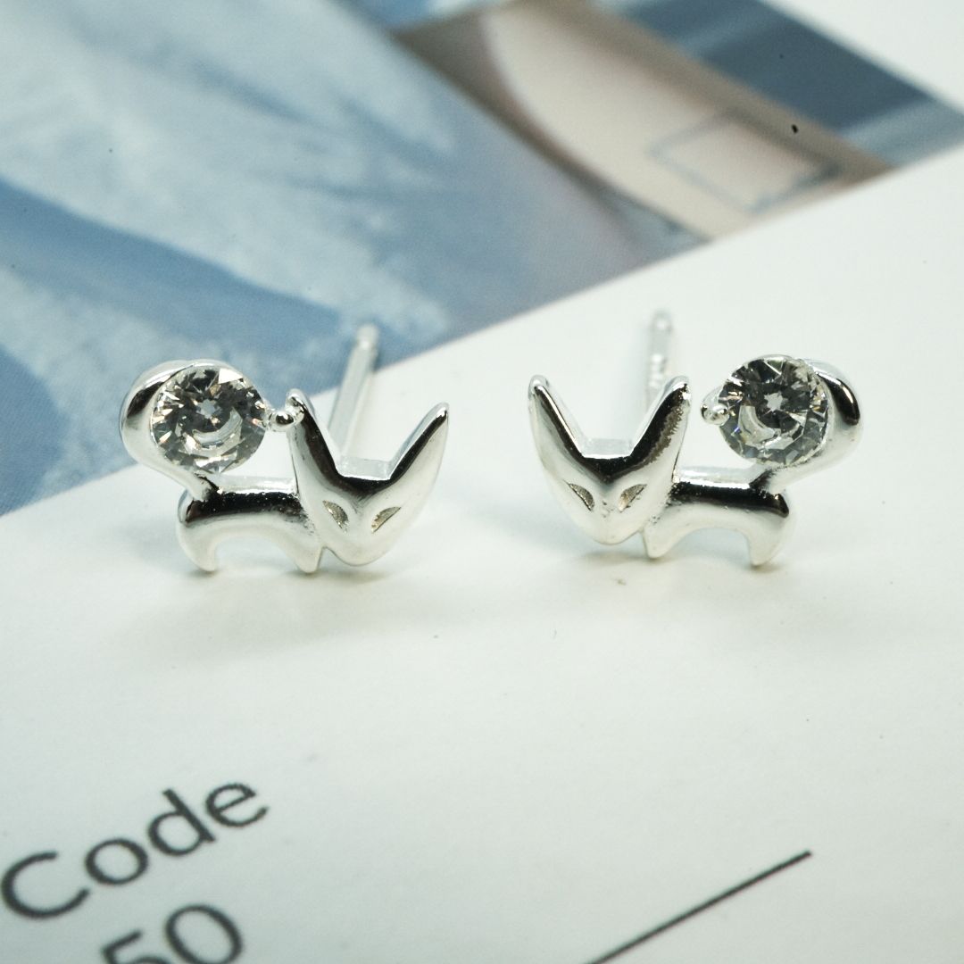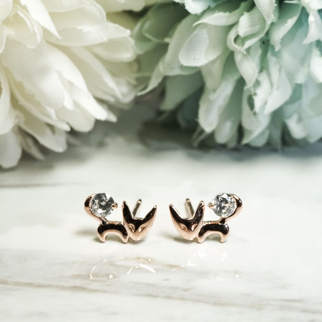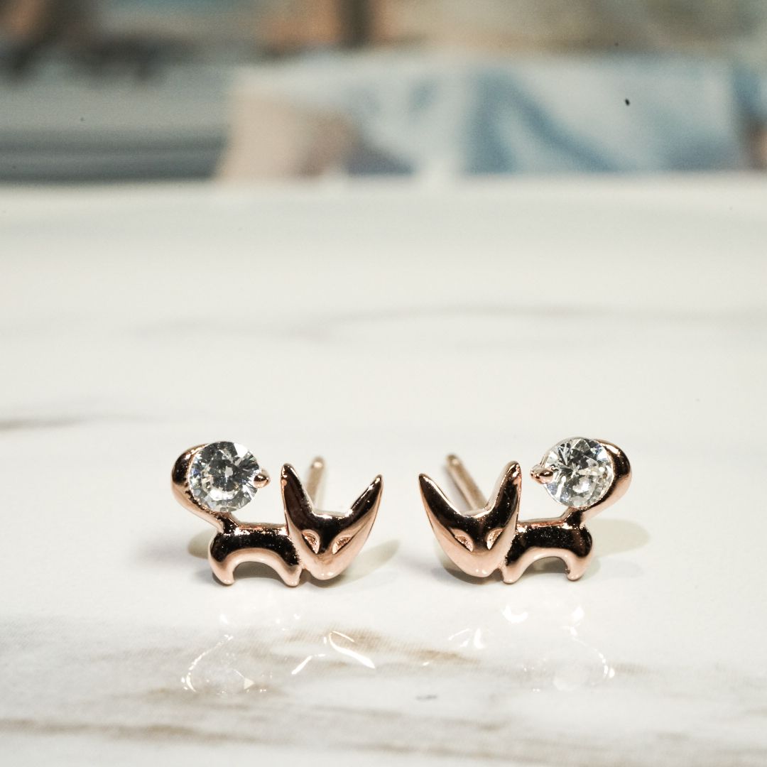 全純銀耳環|2色・狐狸鑽 | 貼耳 | 耳環 | 設計款