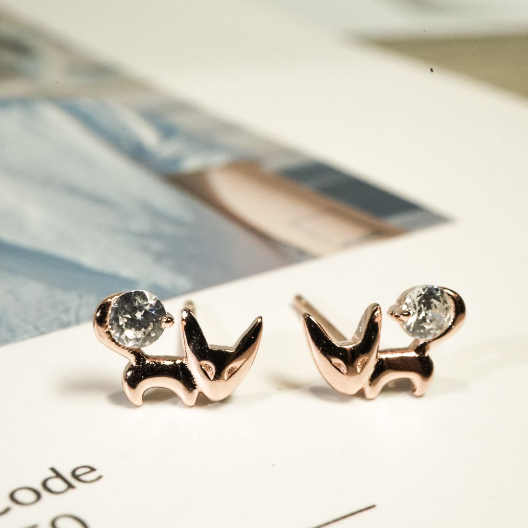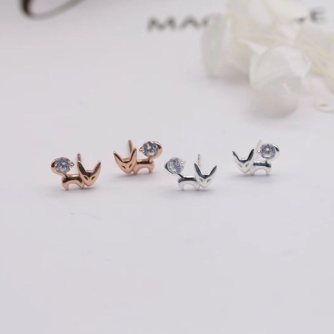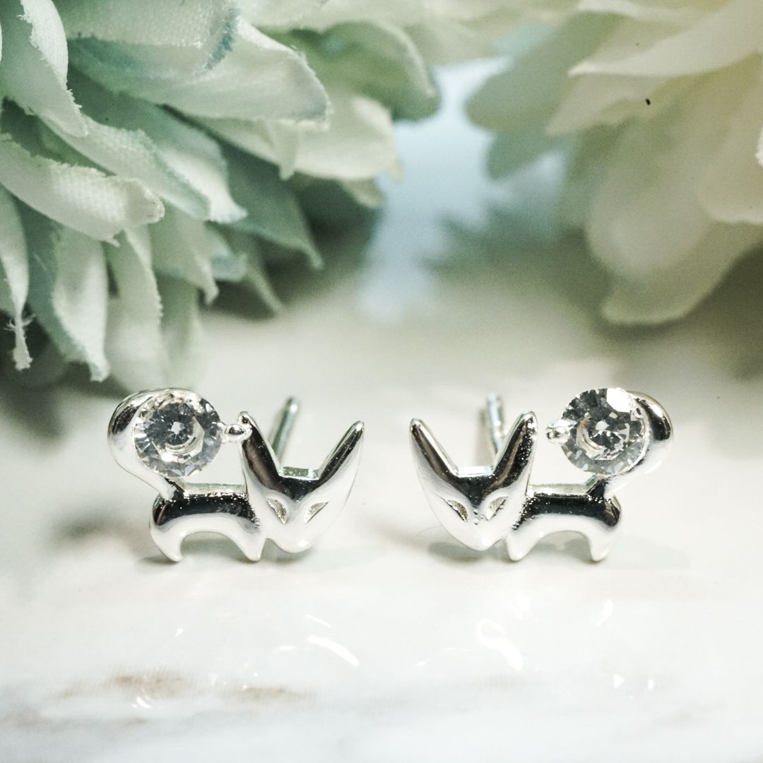 全純銀耳環|2色・狐狸鑽 | 貼耳 | 耳環 | 設計款