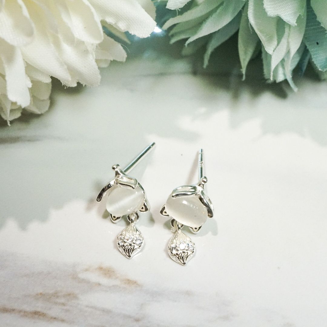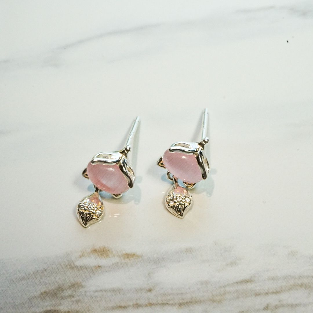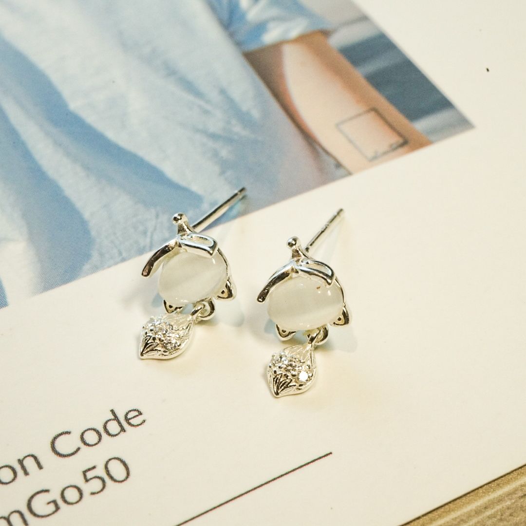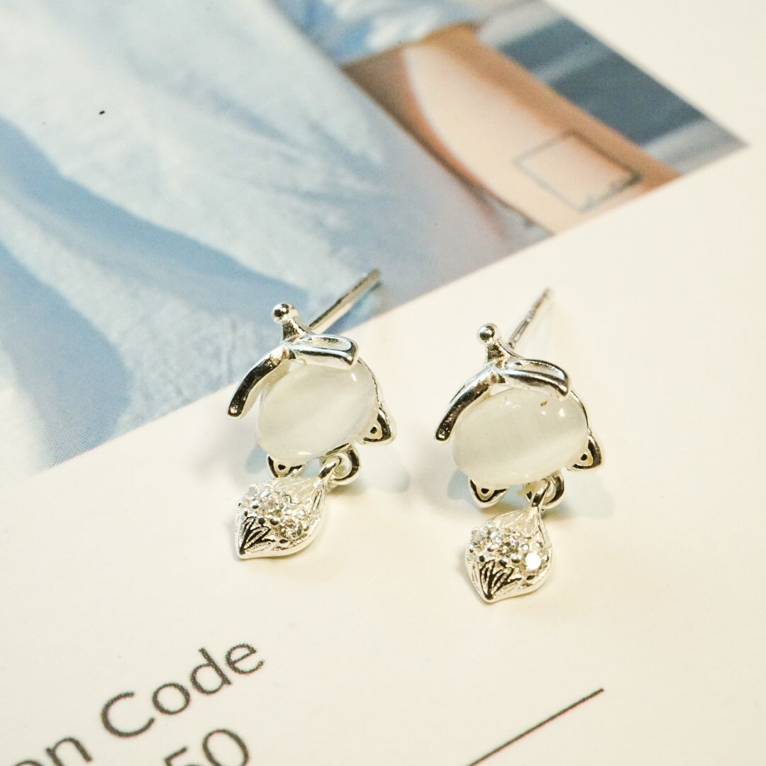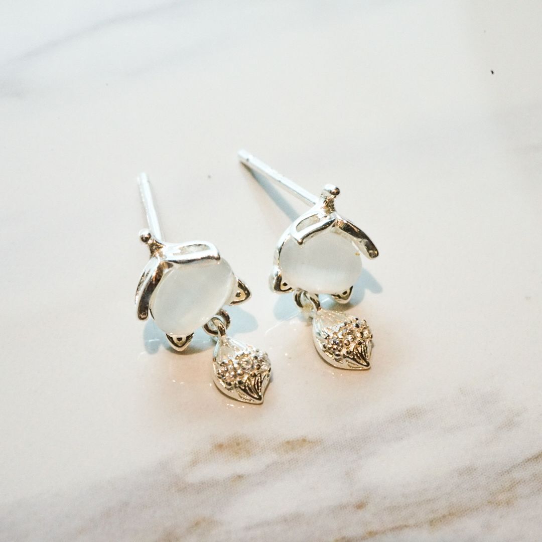 全純銀耳環|2色・狐媚惑主 | 貓眼石 | 狐狸 | 貼耳 | 耳環 | 設計款