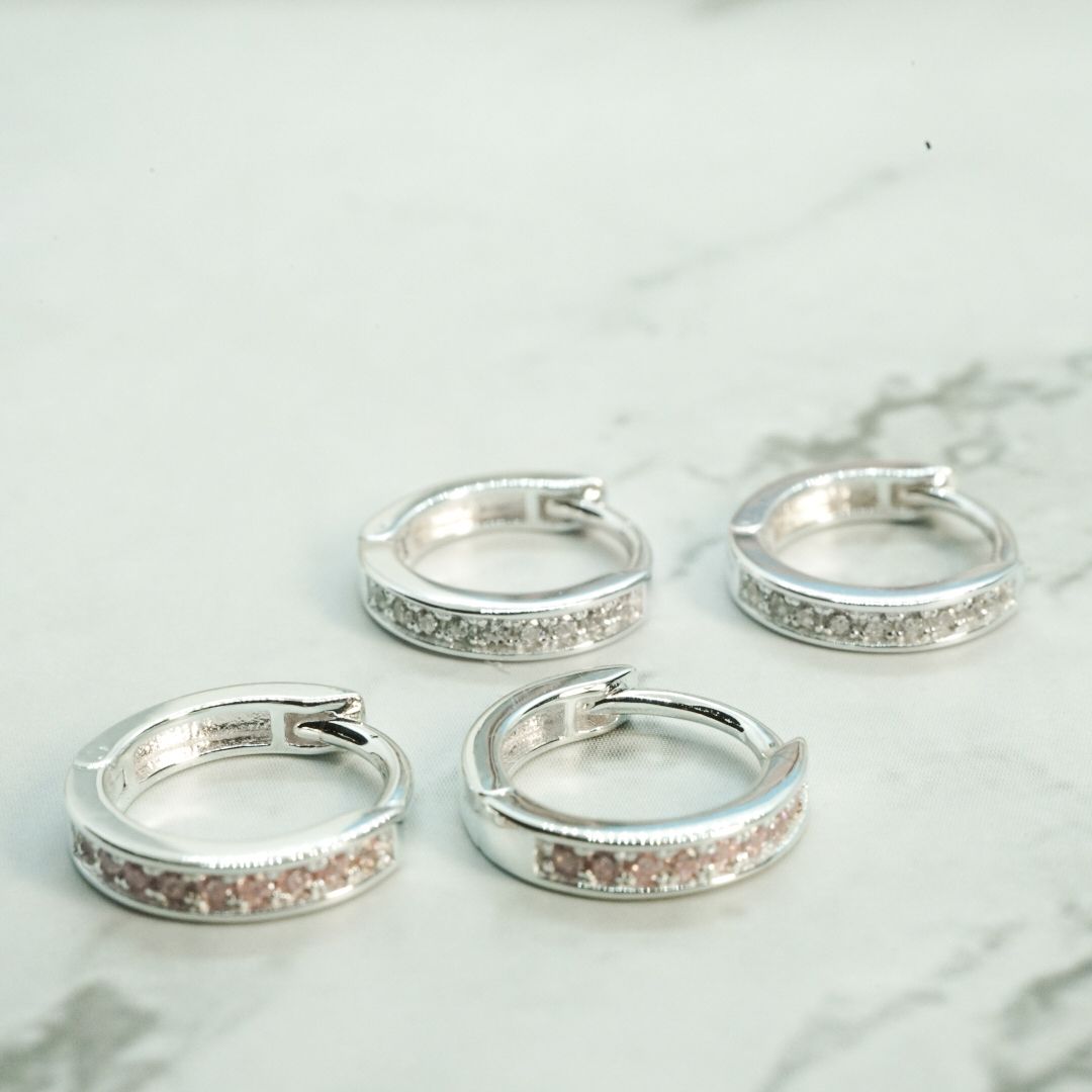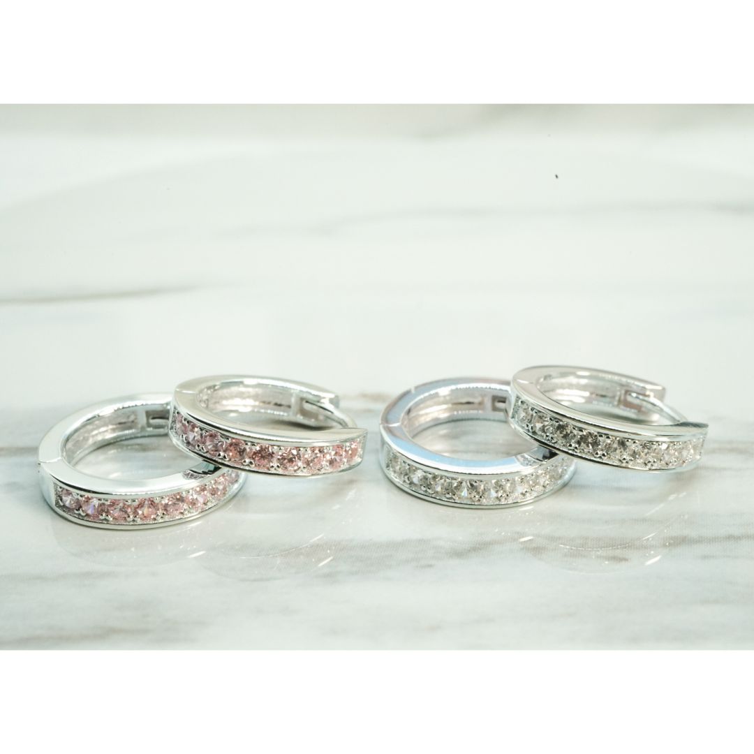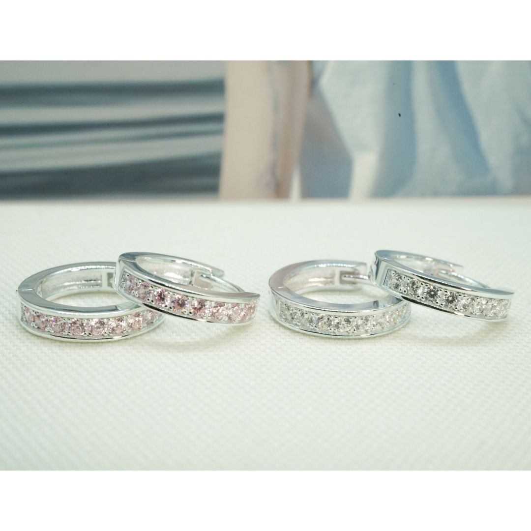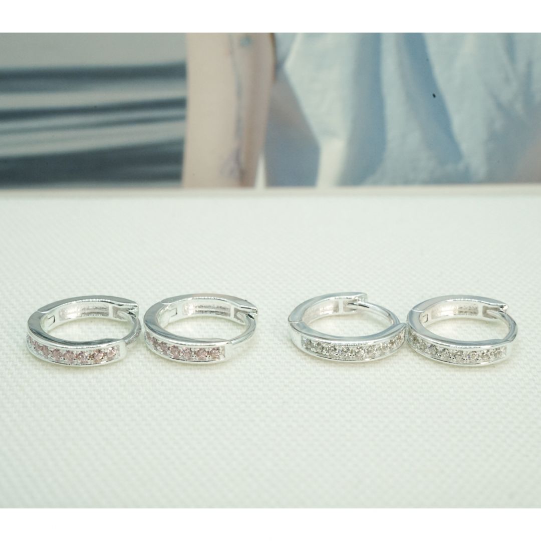 全純銀耳環|2尺寸・經典排鑽