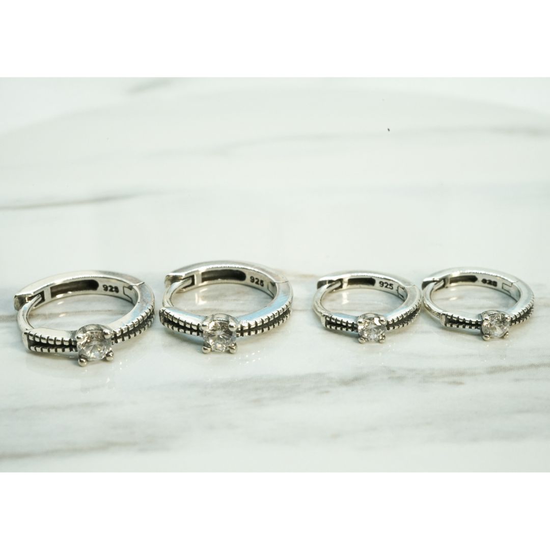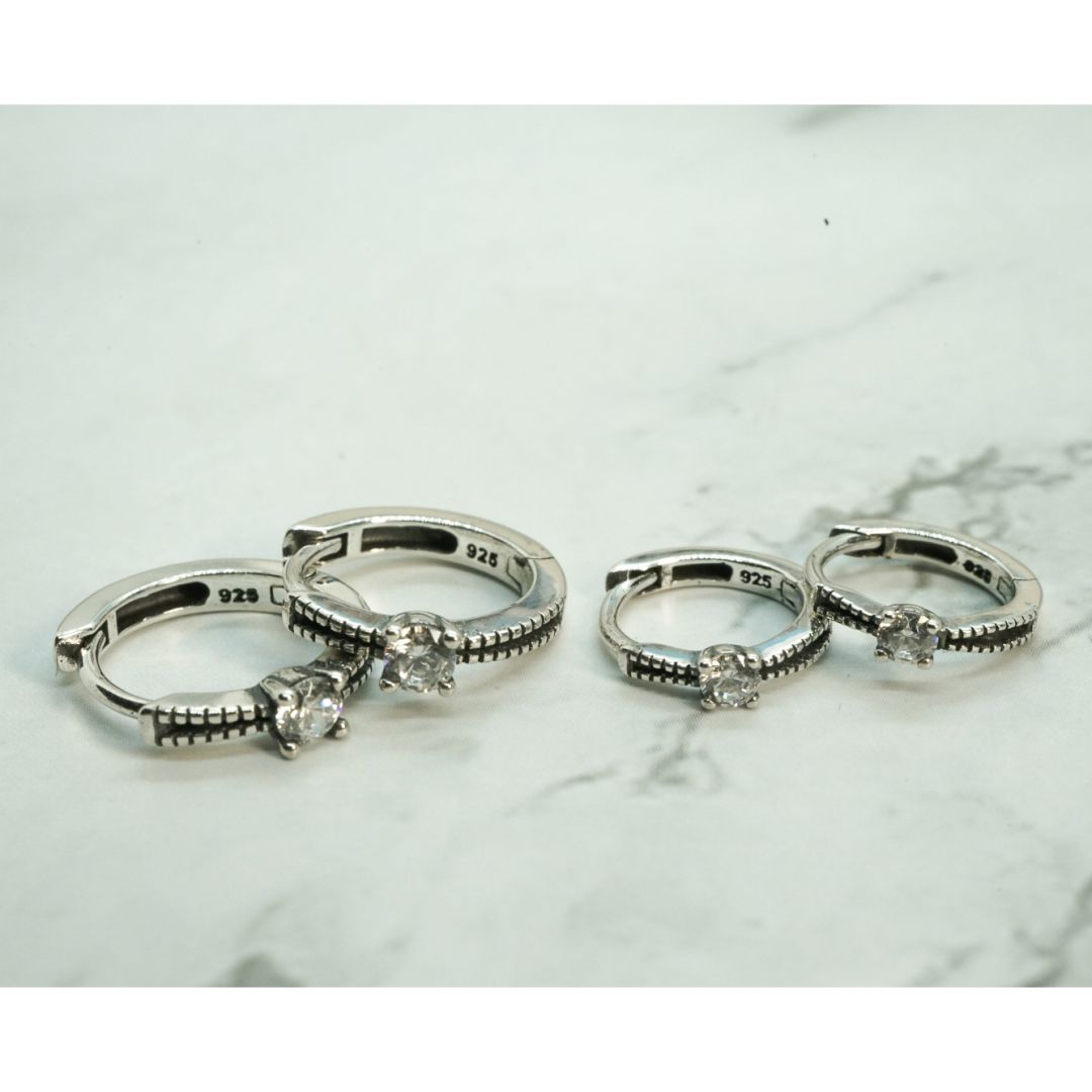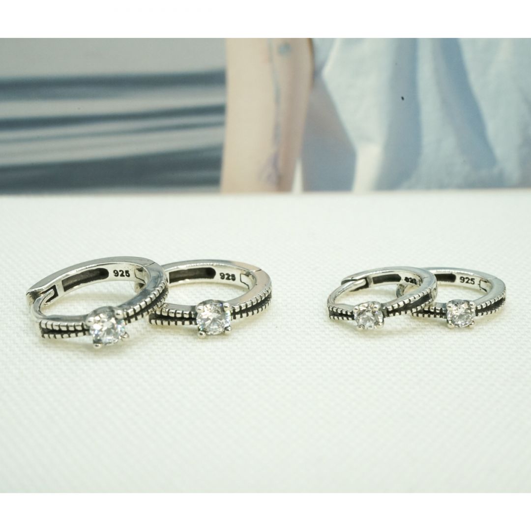 全純銀耳環|2尺寸・點鑽