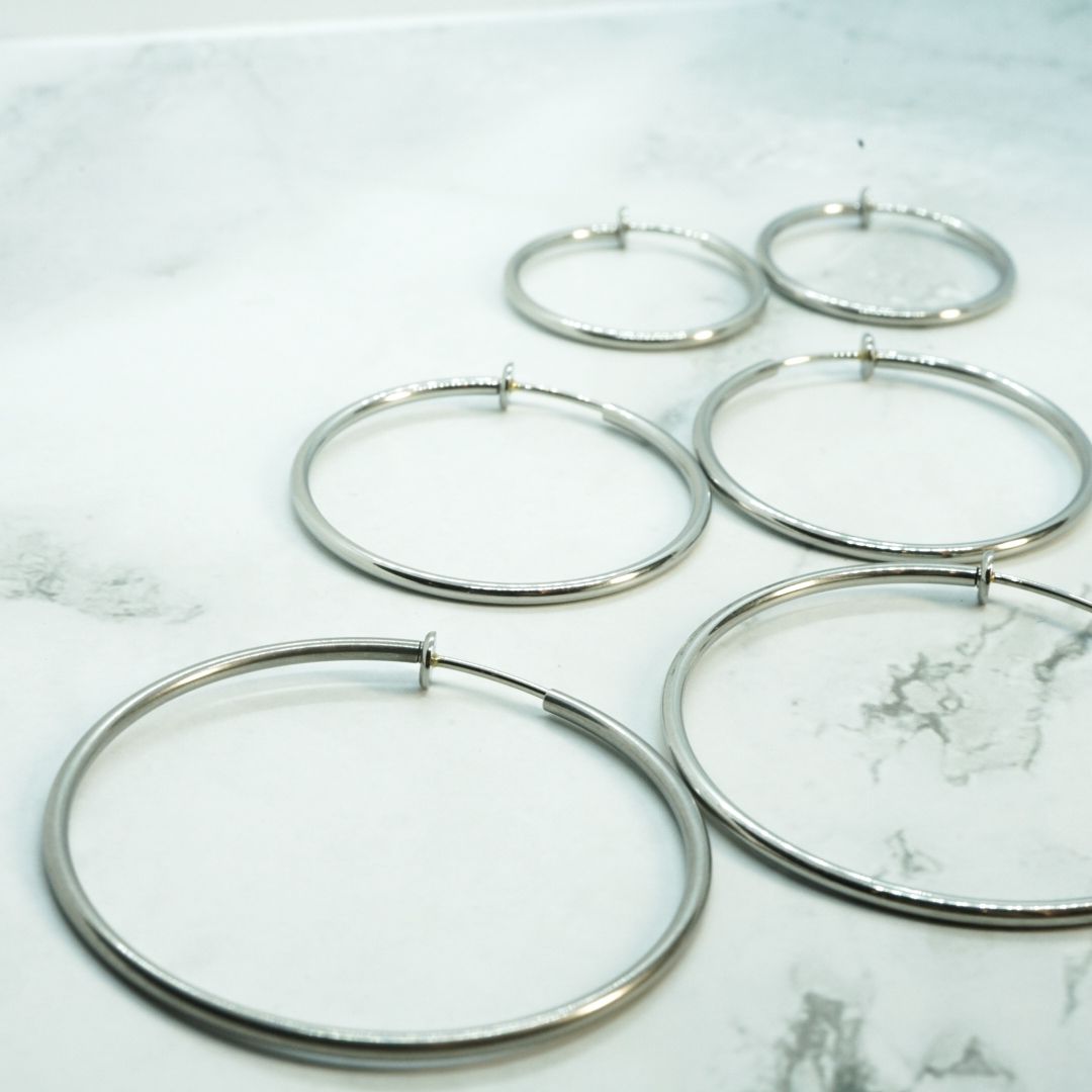 醫療鋼耳環|3尺寸・個性夾式素大圈
