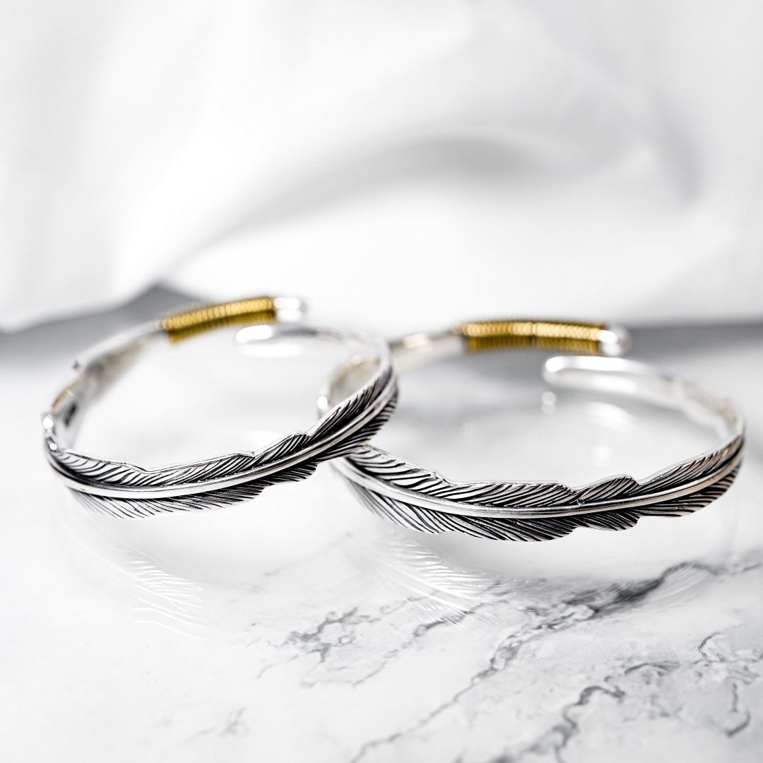 全純銀情侶對手環|真情羽翼 | 硫化 | 情侶 | 手環 | 設計款