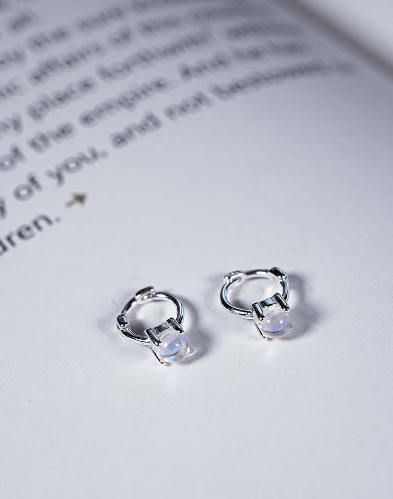 全純銀耳環|朝與同歌暮同酒 · 耳骨洞合適款 | 月光石 | 圈圈 | 耳環 | 設計款