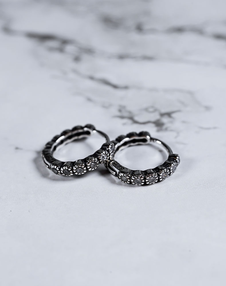 全純銀耳環|太多的傷感沒有釋懷 | 硫化 | 滿鑽 | 圈圈 | 耳環 | 設計款
