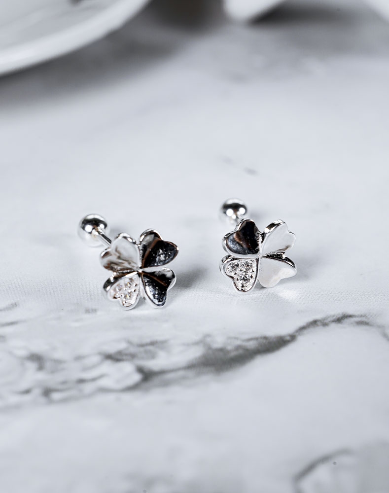 全純銀耳環|童年那場惺忪未醒的夢 | 幸運草 | 貼耳 | 鎖珠 | 耳環 | 設計款
