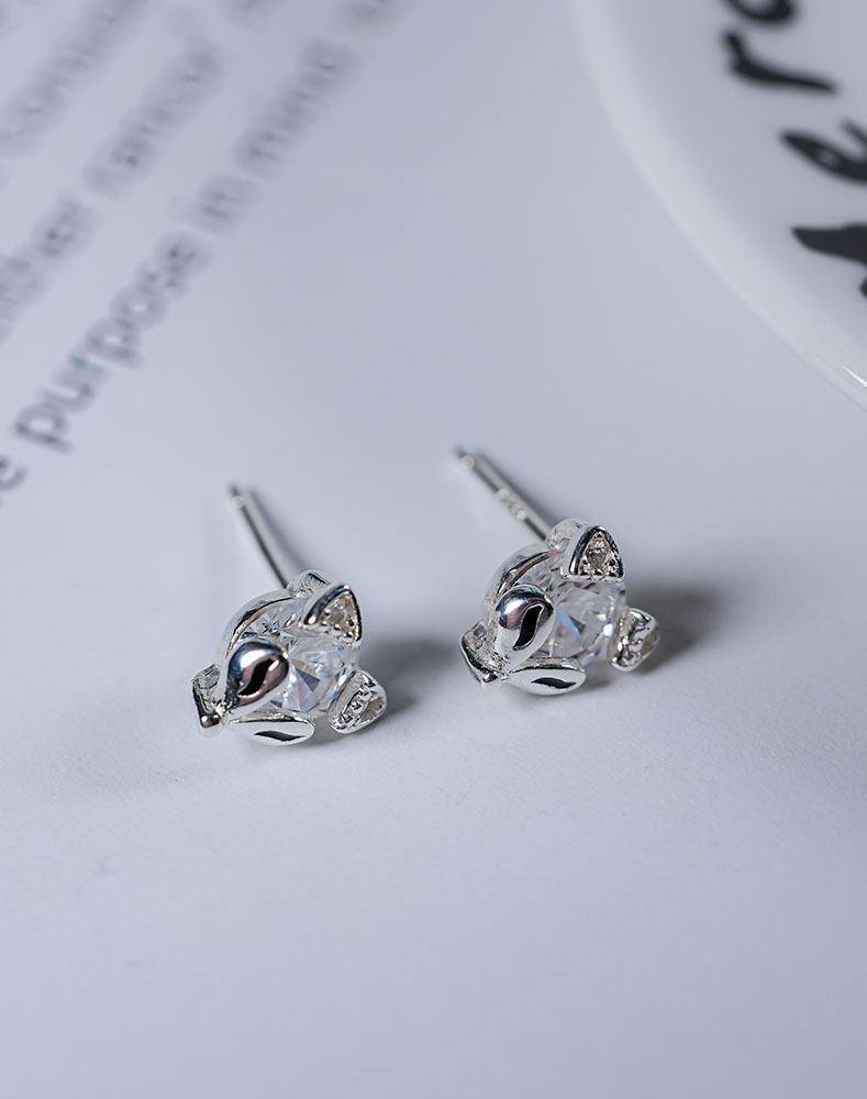 全純銀耳環|靜好現世安穩 | 單鑽 | 狐狸 | 貼耳 | 耳環 | 設計款