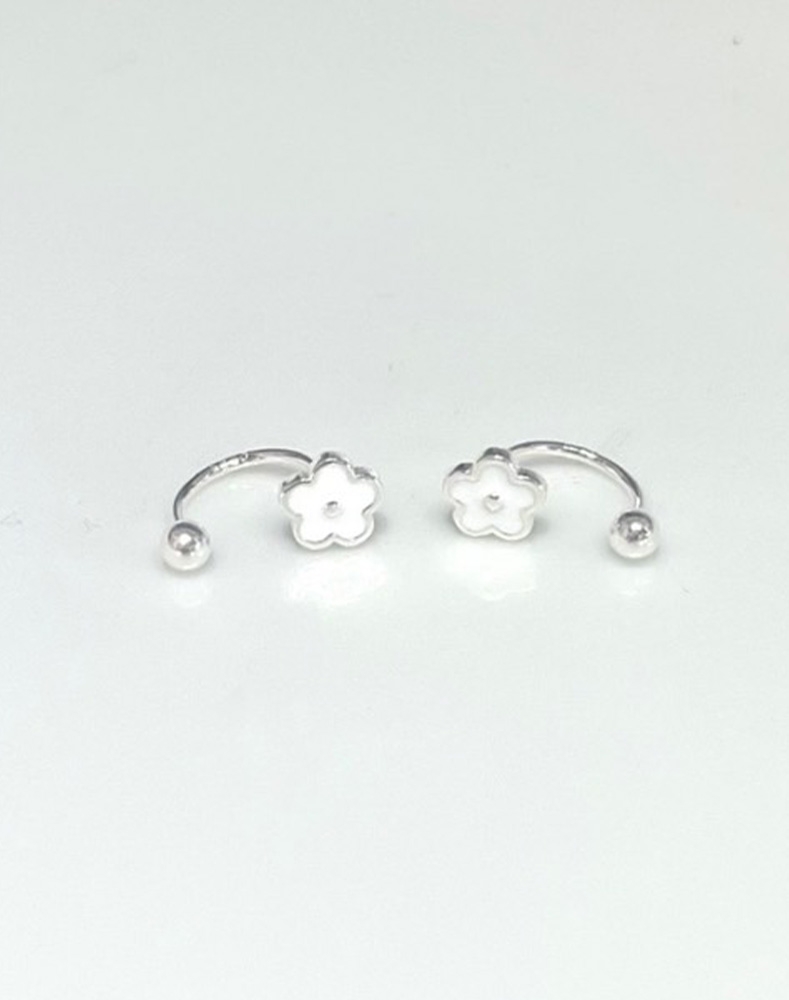 ❤️ 單隻販售可混搭 ❤️ 全純銀耳環|C型系列 。 多種戴法 | 夏日繽紛 卡通花 | 純白 | 鎖珠 | 極簡 | 耳環 | 設計款