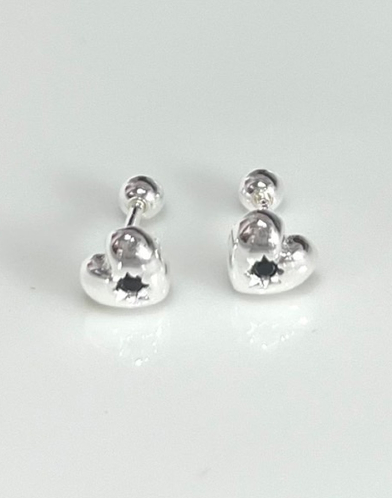 全純銀耳環|素銀愛心 | 黑鑽 | 鎖珠 | 可愛 | 穿洞合適 | 極簡 | 耳環 | 設計款