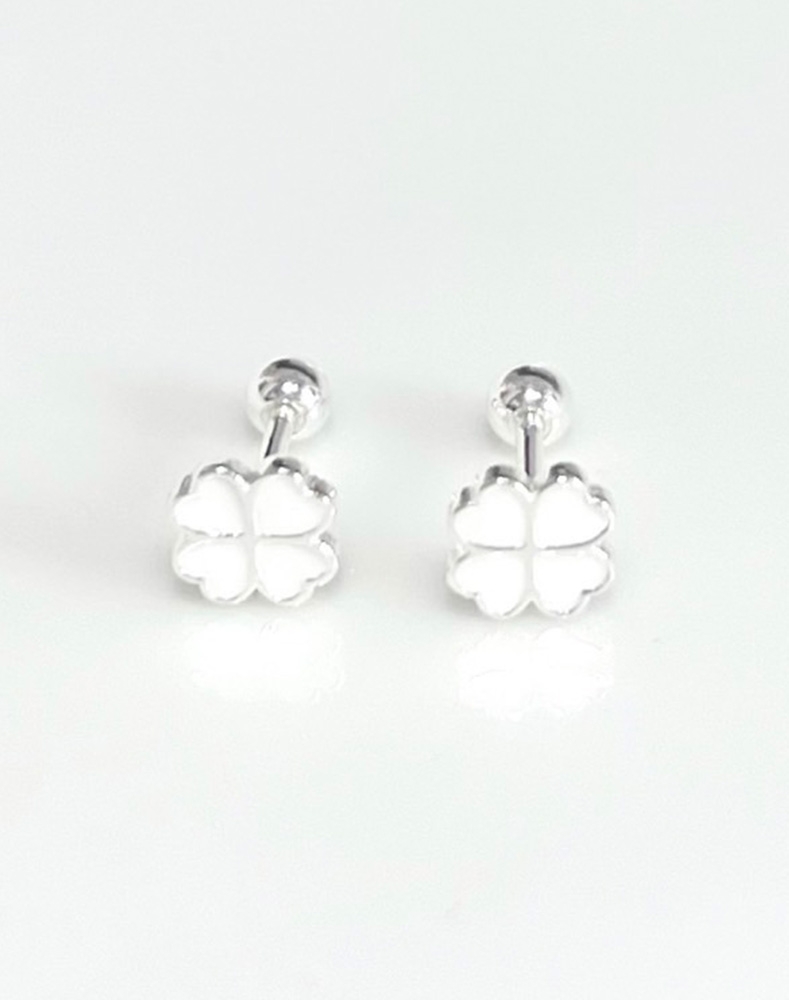 ❤️ 單隻販售可混搭 ❤️ 全純銀耳環|夏日繽紛系列 。 七彩幸運草 | 純白 | 鎖珠 | 可愛 | 穿洞合適 | 夏天 I 耳環 | 設計款