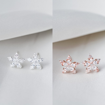 全純銀耳環|2色・百花齊放 | 花朵 | 貼耳 | 耳環 | 設計款